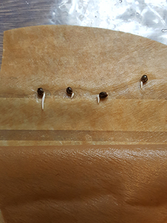 Ontkiemen lukt echter altijd als je onze koffiefilter-methode toepast. Neem daarvoor een ongebleekte koffiefilter en maak die nat onder de kraan. Stop je zaden in het filter en doe het filter met de zaden in een plastic gripzak (diepvrieszakje). Hang deze in het donker op bij kamertemperatuur, en binnen één tot vier dagen zijn je zaden uitgekomen. Je kunt dit controleren zonder je zaden te storen, door het zakje even tegen het licht te houden. Als ze uitgekomen zijn, zie je uit de zaden een klein worteltje groeien.