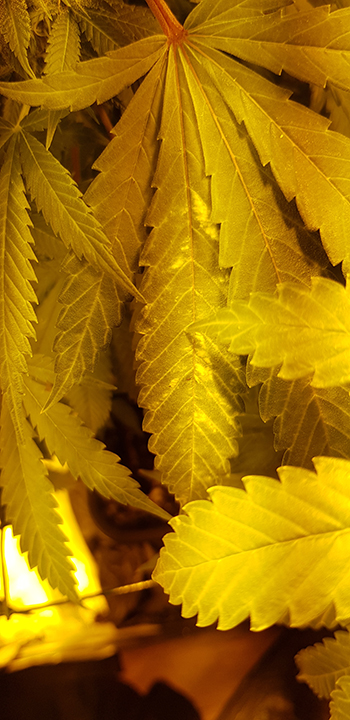 Verkleuring wietbladeren in de bloeifase?