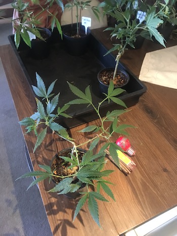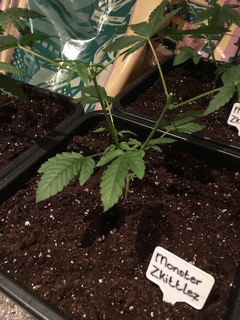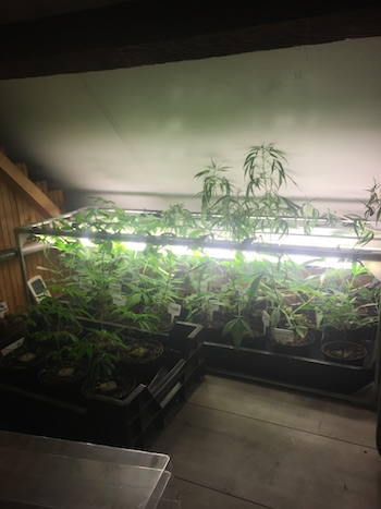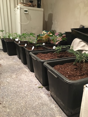 De 15de van mei zijn de dames verpot naar grotere potten (Monster Zkittlez, Kush OG en Bart Sr. Haze naar 18-literpotten, Amnesia Haze naar 50-literpotten). Op het moment wil ik ze eigenlijk nog niet buiten zetten omdat ik het nog te wisselvallig vind. Daarbij wil ik ze ook eerst even laten bekomen van het verpotten, dus ik houd de dames de aankomende twee weken nog binnen onder een lamp met een timer. Ze zijn natuurlijk begonnen met 18 uur licht onder de TL-balk, en nu moeten ze ook langzaamaan gaan wennen aan het daglicht en het lichtschema dat daarbij hoort.