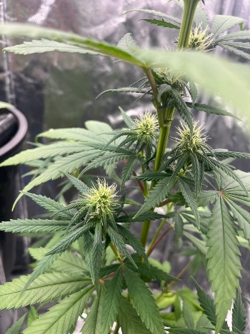 En om je laatste extra vraag nog te beantwoorden, het volume van de toppen neemt in de tweede helft van de bloeifase extra snel toe. Dit is omdat de calyxen waaruit de bloeihaartjes groeien dan pas echt gaan opzwellen. Maar zoals ik eerder al vertelde zullen de topjes zoals je ze nu hebt veel minder dik worden, simpelweg omdat ze wat te ver van je lamp af groeien.