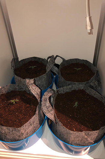 De Root Pouches heb ik dus gevuld met Topmix, dat is een voorbemeste aarde waar voor ongeveer 4 weken voeding in zit. Dit is genoeg voor de groeiperiode, daarna is het aan te raden zelf te gaan bij voeren. De aarde is ingewaterd met een liter water per pot, en per liter water 1 milliliter Mills start.