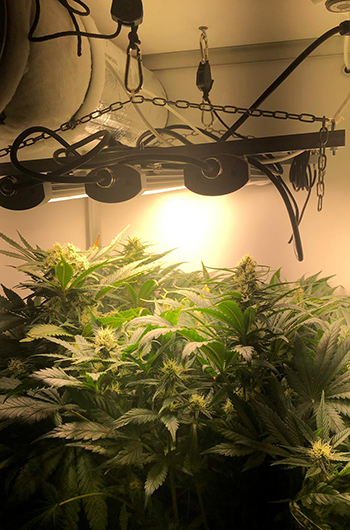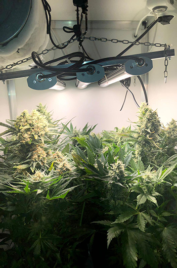 Omdat de Criticals toch te groot dreigden te worden voor de kast, heb ik de kettinkjes waar de led balken aan hangen ingekort waardoor de boel gered was. Inmiddels tel ik 19 dagen zichtbare bloei en moet ik zeggen dat de led het enorm goed doet. De dames zien er super uit en bloeien er op los.