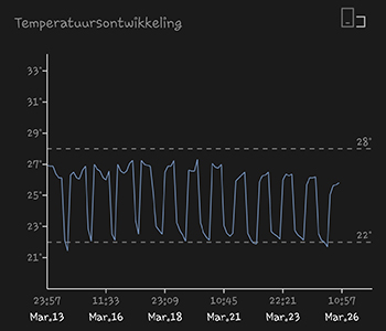 In de grafiek is goed te zien wanneer ik ben overgestapt van 18/6 naar het 12/12 lichtschema. Daar zien we het verbruik namelijk een aardig wat omlaag gaan. Namelijk van 7,94 kWh per dag naar 5,59 kWh. Tot nu toe is er deze maand dus 183,87 kWh aan stroom verbruikt. Ten opzichte van de standaard G-Kit XL 315W CMH valt het iets hoger uit door de ventilators en de camera’s die ik in de kast heb staan.