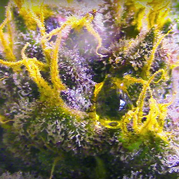Alsof het een naaldboom is gutst de hars van Pinkman Goo rechtstreeks uit de bladnerven en van onderuit calyxen. Een eigenschap die we bij geen enkele andere wietsoort zagen. Kijk voor we verder gaan maar eens naar de plakkerige harsdruppels, je zou ze zo in een dab rig druppelen als je ze ziet!