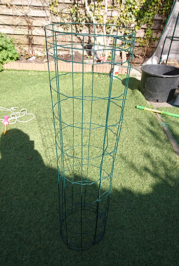 Ook maakte ik alvast plantenkooien voor de planten die altijd buiten blijven staan. Tijdens de Hollandse zomerstormen heb ik mijn plantjes wel eens bijna in horizontale stand zien waaien. Een ronde plantenkooi van tuingaas geeft je plant dan de nodige steun. Het zou immers heel jammer zijn als je plantje knakt tijdens een storm.