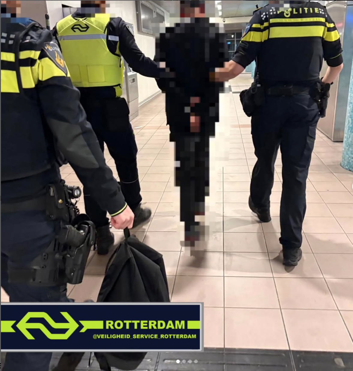 “Na een poging om uit te checken met een ongeldig vervoersbewijs, liep een man achter een andere reiziger aan – iets wat uiteraard niet de bedoeling is. Collega’s V&S hielden de verdachte staande vanwege het tailgaten. Toevallig waren zij op dat moment samen met een eenheid van de Landelijke Politie op pad”, aldus de Rotterdamse serviceverleners op Insta.
