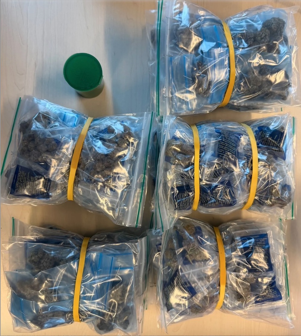 En dan blijkt algauw de reden van zowel zijn alle perken te buiten gaande stepgedrag als de vrij onnozele poging tot vluchten: 1,203 kilo marihuana! Wiet in de volksmond, ook in de Belgische. Zie foto hierboven.