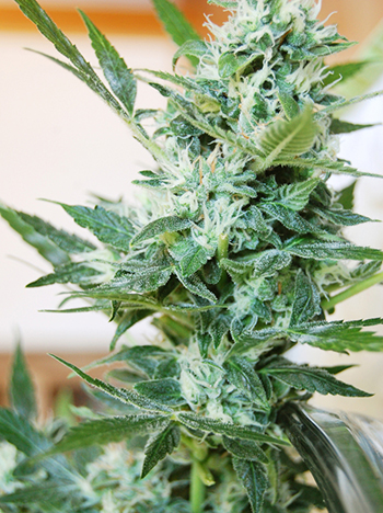 Binnenkwekers kijken voor het oogstmoment naar trichomen, zoals deze van de nieuwe sativa Sneeze. Buiten kun je daar door de (weers)omstandigheden vaak niet op wachten.