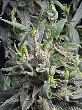 Om deze Nicole Kush 2.0 te kunnen oogsten, zul je haar dus weer terug op het 12/12 lichtschema moeten zetten of het lichtlek moeten dichten. Het probleem is alleen dat je dan een dicht begroeide wietplant overhoudt met enorm veel dunne takjes die je weer zal moeten uitdunnen om normale toppen over te houden.