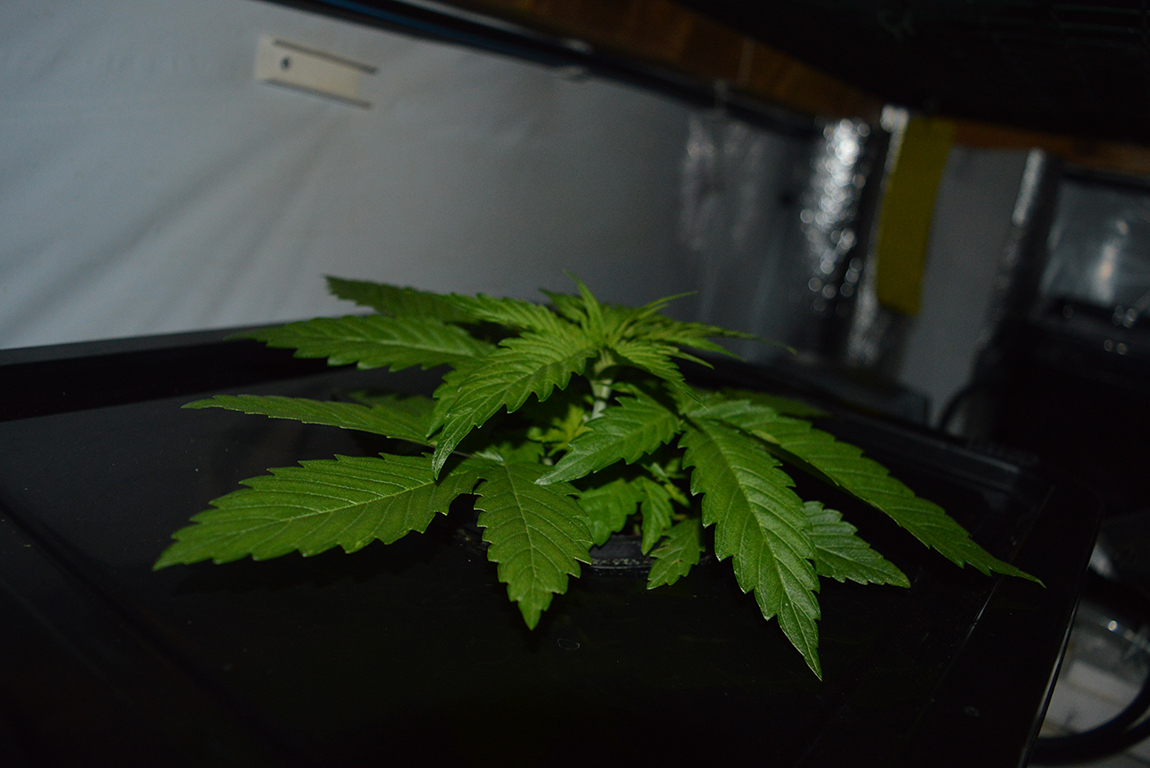Bij Jack komt er nu echt kracht in de Mohammed, en kunnen we gerust stellen dat de groeifase in een versnelling is gekomen. Het voedingswater zorgt voor mooie groene bladeren waarvan de bladvingers al bijna net zo breed zijn als drie van Jacks eigen vingers! Nog even en dan kan de schakelaar alweer op 12/12…