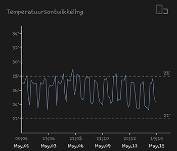 Het waterverbruik schiet de afgelopen twee weken met een redelijk snel stijgende lijn omhoog. Er is in week 5 23 liter verbruikt, en in week 6 zelfs 32 liter water. Dat is best veel volgens mij, en vooral als ik me bedenk dat al dat water de lucht in is gegaan. Waar blijft het toch?
