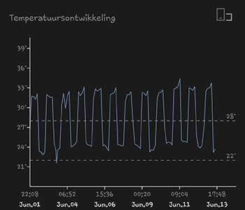 De 315 Watt CMH binnenzon hangt helaas nog steeds op zijn hoogtepunt. De gemiddelde temperatuur was de afgelopen 14 dagen 24,89 graden Celsius. De gemiddelde luchtvochtigheid daarbij was 65,47 procent. Een stuk hoger dan de afgelopen weken maar dat komt omdat het erg vochtig is geweest buiten. Ik verwacht dat dat de komende weken weer goed komt.