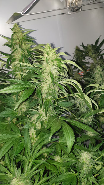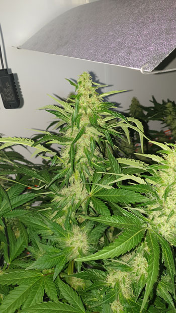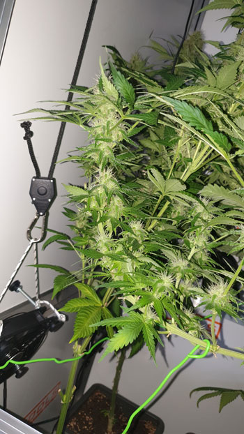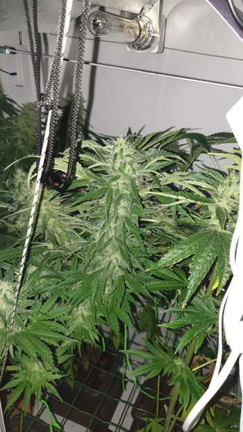 De White Choco Haze tenslotte, heeft een groeispurt doorgemaakt door de warmte. De toppen die ze draagt zijn wel aardig dikker geworden maar het is lastig geworden om daar foto’s van te maken. Door de groeispurt zit ze door de halve kast heen.