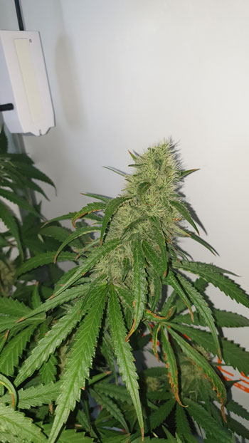 De Critical Orange Punch heeft met haar twee zijtoppen geen last gehad van de hitte. Deze plant doet het erg goed in de CNNBS G-Kit XL. Ik ben benieuwd naar de smaak; ze ruikt in ieder geval heerlijk nu ze in bloei staat! Door naar de AK Choco Kush…