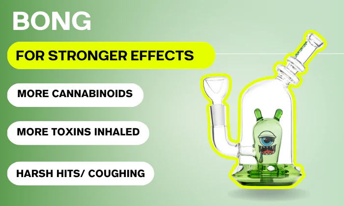 - Een bong is beter voor sterkere hits, directe effecten en het activeren van alle mogelijke stoffen.