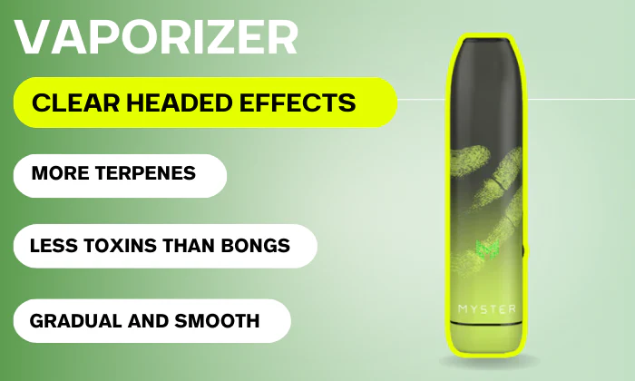 Bongs verbranden wiet op hoge temperaturen, waardoor alle stoffen in één keer vrijkomen voor een snelle, intense high, maar waarbij sommige terpenen worden vernietigd. Vaporizers verwarmen op lagere temperaturen, waardoor de terpenen behouden blijven en de stoffen geleidelijk in lagen worden afgegeven, wat resulteert in een lichtere maar langdurigere high.