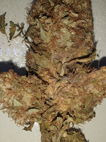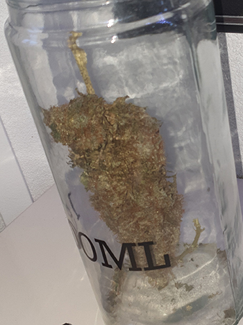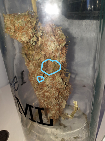 Nu ik de wiet had gewogen was het natuurlijk ook tijd geworden om wat ruimte maken in mijn cannabis voorraad. Ik was er bijna doorheen en had nog een lekkere top in een weckpot staan apart staan. Op het eerste gezicht zag die er goed uit, tot ik de top uit de weckpot haalde. (…en ik later de foto’s terugkeek).