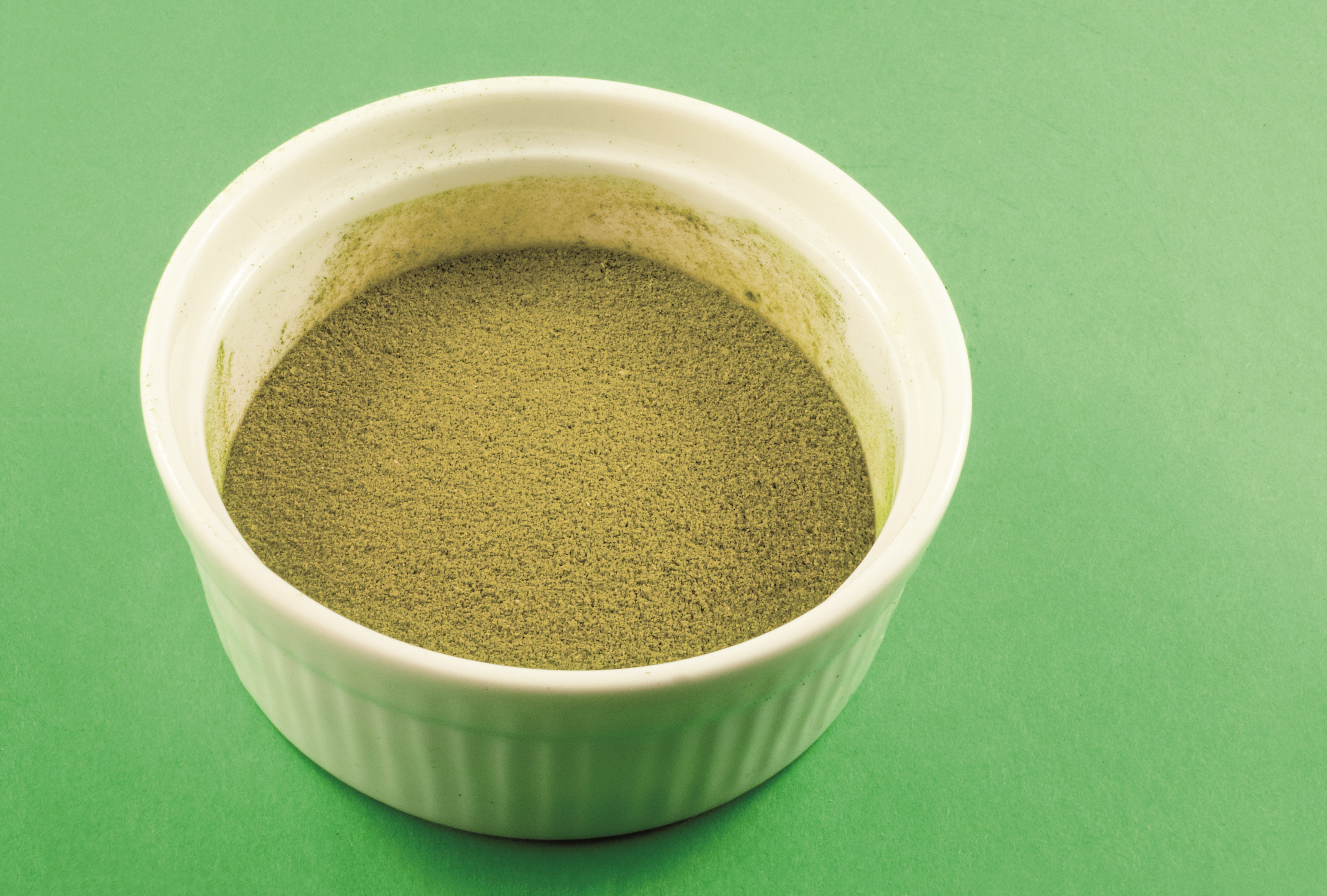 Laat de wiet even afkoelen als het net uit de oven komt. Het moet nu heel droog en broos aanvoelen. Vermaal het tot een fijn poeder, daarna zeef je het poeder in een fijnmazige keukenzeef zodat alle kleine stukjes zoals steeltjes eruit zijn.