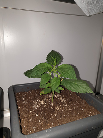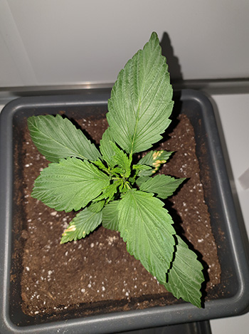 Frisian Duck nummer twee heeft de verhuizing het beste doorstaan. Met slechts een klein geel plekje op het blad heeft deze dame eigenlijk niets te klagen. Ze lijkt iets verder in de ontwikkeling dan de eerste Frisian Duck, en heeft al drie Duckfoot-bladeren. Ook deze heeft een hoogte van ongeveer 16 centimeter.
