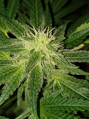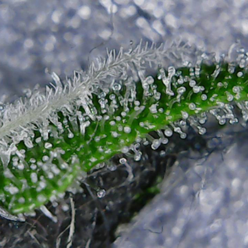 Buiten de hoofdtoppen zijn er ook genoeg kleinere exemplaren te vinden en deze zitten goed vol met trichomen. En dat brengt me bij het volgende.
