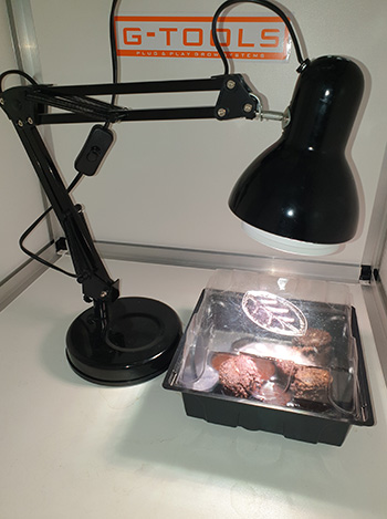 Voor de nieuwe ronde zijn de zaden inmiddels allemaal binnen. Drie keer Frisian Duck van Dutch-Passion en als bonus gratis ontvangen bij de bestelling is de Critical Orange Punch ook van Dutch-Passion. Dit keer heb ik er een led grow lamp (E27 10 Watt) van de Ikea boven gehangen, zodat de zaailingen niet zo erg de hoogte in gaan. Dit alles staat in de G-kit met verhogingsset.