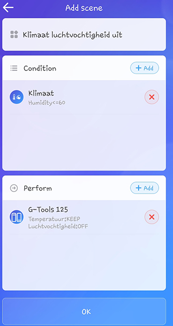 Gelukkig had ik de Inkbird IBS-TH1 ingesteld als alarm, dat wanneer de temperatuur teveel ging lopen mijn mobiel een alarmmelding zou afgeven. Na het handmatig inschakelen ging het een paar minuten later helaas weer mis en schakelde de afzuiger weer uit. Ik had eigenlijk ook wel een beetje verwacht dat een dubbele opdracht in de Scene een conflict zou opleveren.