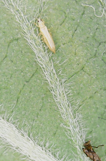 De trips zijn nog geen reden voor paniek, maar zo vroeg in de kweek is het wel belangrijk om in actie te komen. Omdat ik geen gif wil of ga gebruiken, zal ik de trips bestrijden met hun natuurlijke vijand: de roofmijt.