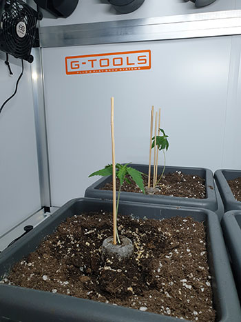 In de G-Kit XL staan nu dus vier gezonde maar wat lange Liberty Haze zaailingen van Barney’s Farm van 9,5 centimeter hoog. Aanstaande maandag wil ik het lichtschema al van 18/6 naar 12/12 omzetten, zodat ze 12 uur in het licht en 12 uur in het donker staan. Dat is misschien wat vroeg voor de bloeifase, maar ik wil voorkomen dat deze sativa’s te hoog worden.
