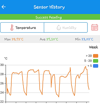De luchtvochtigheid is met 38,47 procent gemiddeld, erg aan de lage kant. De afgelopen twee dagen heb ik de Arctic Air hierom weer in de kast gezet. Dit apparaat koelt, en brengt de luchtvochtigheid wat omhoog. In de grafiek van de luchtvochtigheid is goed te zien dat de Arctic Air zijn werk doet.