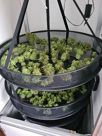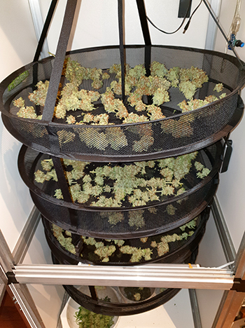 Na een grondige inspectie heb ik echter en gelukkig niets kunnen vinden. “Maar Willie, zat niet alles onder de vliegjes?” Dat viel gelukkig viel reuze mee. Ik wil niet ontkennen dat er vliegjes op zaten maar dat waren er maar een paar per plant, en dat had ik absoluut niet verwacht. Na een goed uur knippen en inspecteren was de eerste Sneeze klaar om het droognet in te gaan. Deze heb ik opgehangen in de kleine en inmiddels lege kweekkast waar die net in past. En ik moet zeggen; dat werkt top! De wiet is snel droog en je ruikt er buiten de kast niets van.