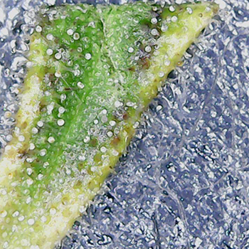 Ook deze week heb ik weer een suikerblad weggeknipt en onder de microscoop gelegd. Het eerste setje is van de twee dames aan de linkerkant van de kweekkast (CNNBS G-Kit XL CMH). In vergelijking met vorige week is het gros van de trichomen dieper wit geworden, met hier en daar een enkele verdwaalde amberkleurige.