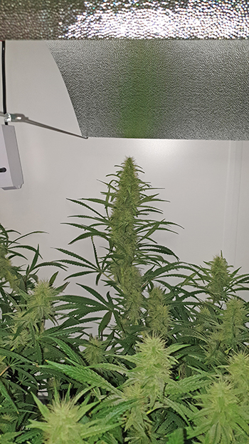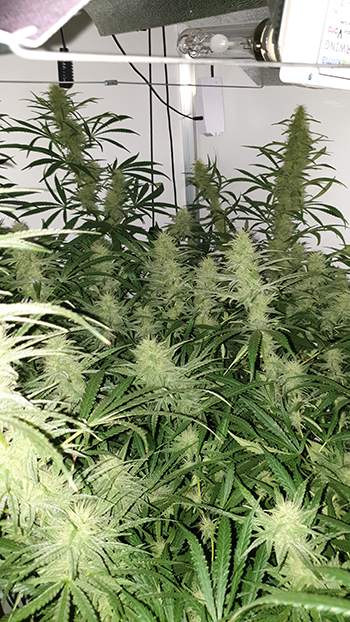 Ik heb echt niets te klagen over de topontwikkeling onder de 315 Watt CMH zon. Mijn wietplanten hebben prachtige en vooral hele lange toppen die zichtbaar, steeds dikker en dikker worden. Gelukkig groeien ze nu bijna niet meer in de hoogte; de langste dame is ongeveer 110 centimeter hoog.