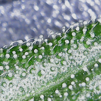 Vorige week heb ik alvast wat foto’s van de trichomen genomen. Vandaag heb ik er weer een paar gemaakt. Zo kan je goed zien dat het er steeds meer worden, en dat is natuurlijk ook precies de bedoeling. De piepkleine THC-fabriekjes worden ook steeds dikker en witter van kleur, mooi om te zien!