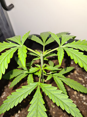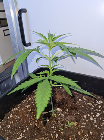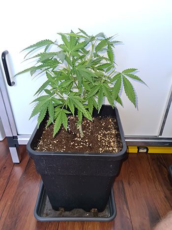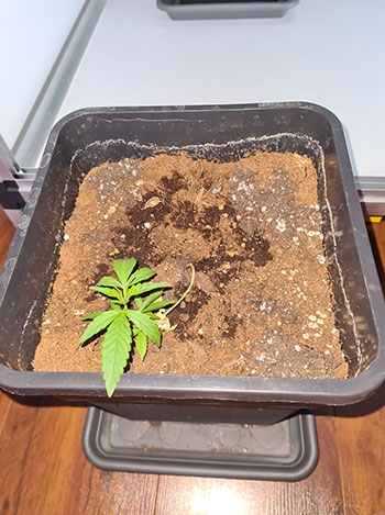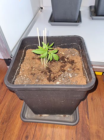 De volgende dame is de achterste van de rij van drie op de groepsfoto. Ze was voor haar onthoofding 20 centimeter en daarna nog maar 15. De bewatering van deze plantjes gebeurt momenteel ook dagelijks en daarbij krijgen ze 350 milliliter per keer. Eveneens volgens het voedingsschema van Plagron van week #1.