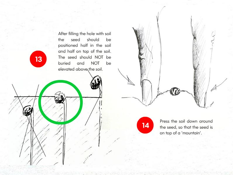 - Stap 4: Het overtollige water zakt onderin het gripzakje, leg het dagelijks even een minuutje horizontaal zodat het water terugtrekt in het keukenpapier. Een worteltje kan al binnen 1 dag naar buitengroeien dus kijk elke dag even voorzichtig of dit al het geval is. Wanneer je zaadje een worteltje heeft van ongeveer een centimeter kun je het voorzichtig in de grond plaatsen met behulp van een theelepeltje. Plant hem zo diep dat het zaadje zelf voor de helft boven de grond uitsteekt en met het witte worteltje naar beneden uiteraard 😉