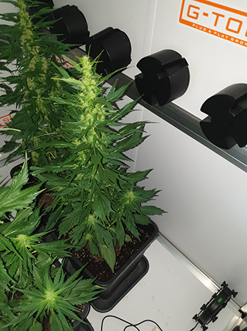De tweede Frisian Duck staat er beeldschoon bij! Het is een erg mooi compact plantje met een hoogte van 59 centimeter. De Frisian Ducks ruiken trouwens nog niet erg sterk. Tot nu toe blijkt de Frisian Duck een uitstekende undercover wietplant.