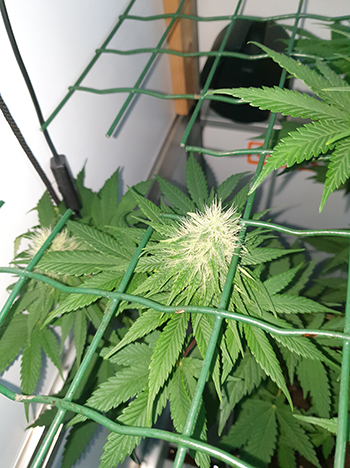 De G-Kit XL staat momenteel vol met de kleine bolvormige toppen van de Pineapple Poisons. Ik denk dat ik deze dames alleen iets te ver heb teruggesnoeid. De Pineapple Poison die aan de linkerkant in de kast staat heeft wat moeite om nog door het hekwerk te komen met al haar toppen. Zoals ik net al zei zijn de toppen namelijk erg bol; ze hebben wel wat weg van kogelvissen met van die witte stekels.