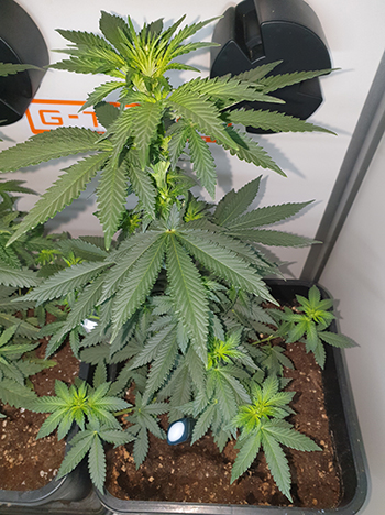 De Sneeze zijn deze week dus ook goed de hoogte in gegaan en hebben nu een gemiddelde hoogte van 35 centimeter. Na het aanpassen van de hoogte van de lamp zijn de dames ook meer gaan drinken. De twee Sneeze krijgen nu dagelijks 600 milliliter water, met voeding van Plagron.