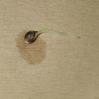 De tweede paar Morning Glory’s zaadjes kwamen gelukkig wel uit, zoals je kunt zien. De eerste was na zo’n vier dagen klaar om in de aarde te gaan, en de andere mogen nog een paar dagen in de beker doorbrengen.