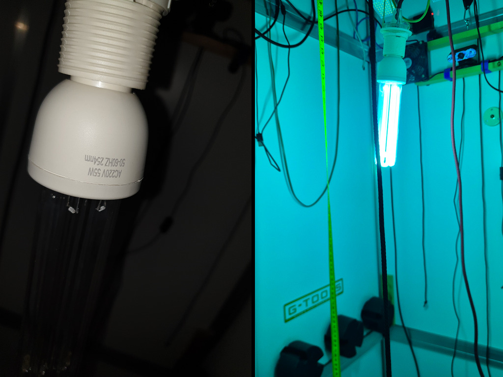 Om de schoonmaak dit keer helemaal af te maken heb ik geïnvesteerd in een UV-C lamp van 55 Watt. Deze produceert ultraviolet C-licht (UV-C), dat voornamelijk wordt gebruikt voor desinfectie door bacteriën, virussen en andere micro-organismen te inactiveren. De lamp werkt in lucht, water en op oppervlakken.