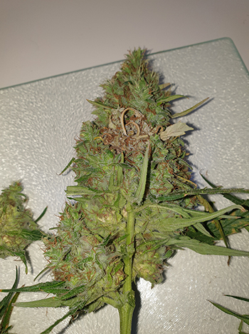 Deze week is de 16e en laatste week van deze kweekronde. Vorige week kwam ik er tijdens het fotograferen van de planten achter dat een van de toppen (de grootste 🙁 ) toprot had! Dat was natuurlijk zwaar balen, bovendien wist ik toen nog niet hoe groot de schade aan de wietplanten was. De volgende dag ben ik aan de slag gegaan met het verwijderen van de toprot, en de oogst van de rest van de toppen.