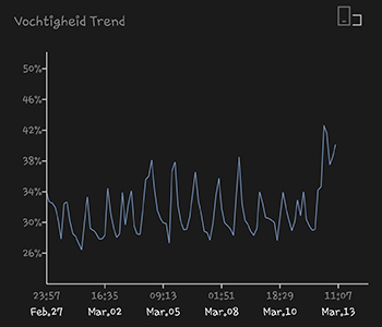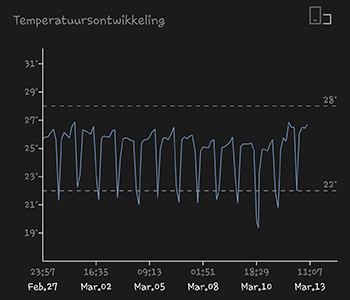 De klimaatgegevens laten ook duidelijk zien dat het wat kouder is buiten de laatste tijd. De gemiddelde temperatuur van de afgelopen 14 dagen was 24,32 graden Celsius. Het gemiddelde van de luchtvochtigheid was 36,97 procent. De lucht is dus ook erg droog in de G-Kit XL. De 315 Watt CMH lamp hangt op een hoogte van 30 centimeter boven de dames. Voor de resultaten over het stroomverbruik houd ik jullie nog even in spanning tot ik een maand aan gegevens binnen heb.