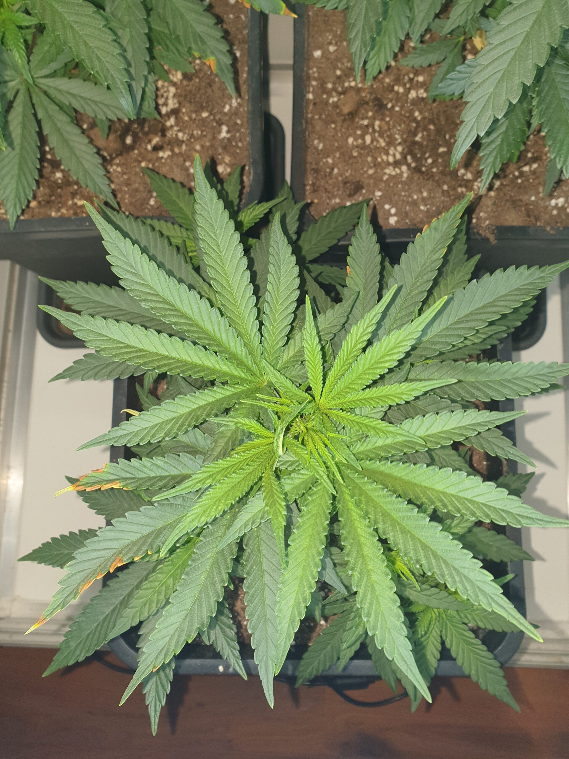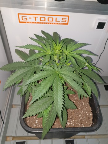 De dames zijn mooi donkergroen van kleur en hebben een lengte van 22 centimeter. Op de Sneeze rechts achterin na. Die dacht, “laat ik eens de lucht in gaan”. Deze heeft dan ook een lengte van 29 centimeter. De dames drinken dagelijks een kleine 250 milliliter water met voeding van Plagron. Ook hier is de verlichting omgegaan van 18/6 naar 12/12. De G-Bars LED heb ik op een hoogte van 23 centimeter boven de dames hangen. Ik gebruik zoals je weet de oude 150 Watt en niet-dimbare versie van deze LED; tegenwoordig is het een dimbare 170 Watt versie.