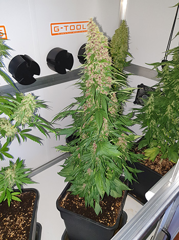 Zijn wietplanten bloeien nu zeven weken en worden door het licht van de 315 Watt CMH bulb inmiddels zo dik dat Willie Wietman ze liefkozend namen als ‘de dikke Cubaanse sigaar’ en ‘de reus’ heeft gegeven. Mohammed zaailingen zijn verpot en staan klaar voor een nieuwe ronde, en de LED voor de ‘solar space bucket’ is eindelijk uit China aangekomen.