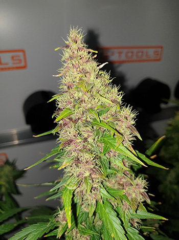 De eerste Frisian Duck staat erbij als een model-wietplant; ze kan zo op de website van Dutch-Passion. Ze is steeds dieper paars aan het worden en begin nu licht te ruiken. Met nog een paar weken te gaan ben ik erg benieuwd hoe paars ze gaat worden. Haar top heeft op het dikste punt een diameter van 6 centimeter.