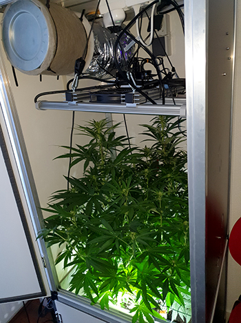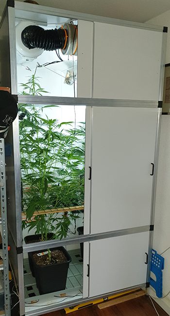 Ik zette net wat spullen weg toen er op de deur werd geklopt. Willie!!!! De hele gang stinkt naar de wiet! Oeps! Ik was lekker in de kast aan het zuigen geweest maar de stofzuiger heeft helaas geen koolstoffilter. Nou, snel de afzuiger aangezet en de stofzuigerzak vervangen, wat parfum gespoten en 20 minuten later was het probleem opgelost en m’n vrouw ook weer gelukkig. Ik heb de ventilators nog wel even een dag uit gelaten.