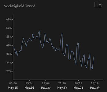 Het was vrijdag 02:19 uur toen ik werd opgeschrikt door een alarm op m’n mobiel. Het was de sensor van de G-Kit met verhogingsset waarin de Sneeze planten staan. De luchtvochtigheid had een alarmerend niveau bereikt van 85 procent. Dat is wel erg hoog dacht ik bij mezelf, en ben maar op onderzoek uitgegaan. De tweede sensor in de kast gaf een waarde aan van 80 procent; ook erg hoog.