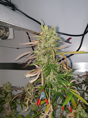 Het knippen van de Sneeze ging ook lekker snel. Het voordeel dat ik de Sneeze twee weken terug al heb geknipt, is dat ze nu al droog is en ik het heb gewogen. Je hoeft dus niet meer 14 dagen te wachten op het oogstgewicht van deze twee planten.