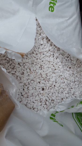 Van mijn bevriende binnenkweker kreeg ik de tip om wat perliet aan mijn kokosmix toe te voegen. Ik heb hiervoor bij de growshop een zakje perliet van 100 liter gekocht (kleiner hadden ze niet 😉 ) duur was het in ieder geval niet, slechts 12 euro. Deze heb ik in de verhouding 1 op 3 toegevoegd aan mijn kokos, en in een grote kuip gemixt zodat alles mooi verdeeld werd.