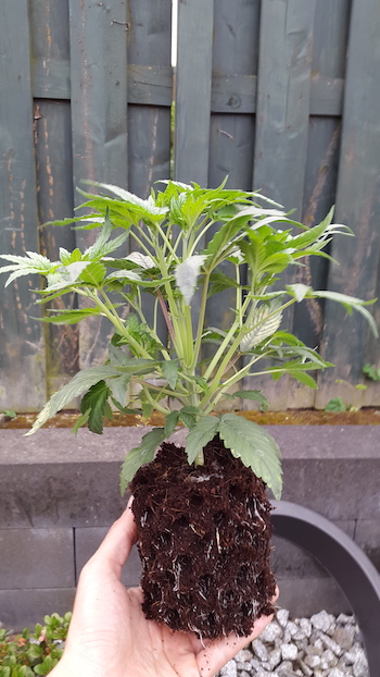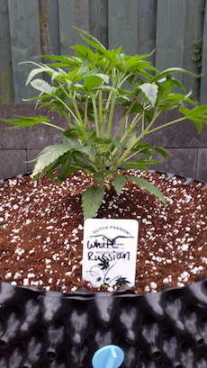 Het enige wat me opviel is dat alle bladeren er bijna hetzelfde uitzien. Dit terwijl de Biddy Early een sativa dominante hybride is en de White Russian een indica dominante, aldus de website van Serious Seeds. Maar goed, misschien dat nu ze onder het zonnetje komen te staan dit verandert. De Biddy’s zijn wel al een klein beetje groter/langer dan de White Russians.